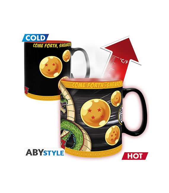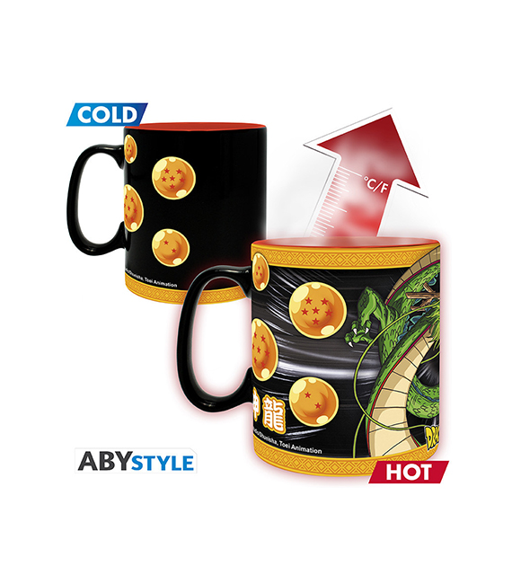 Versez votre boisson chaude et voyez Shenron surgir du mug magique Dragon Ball Z par ABYstyle. Le dragon légendaire apparaîtra dans toute sa puissance, prêt à exaucer vos souhaits !