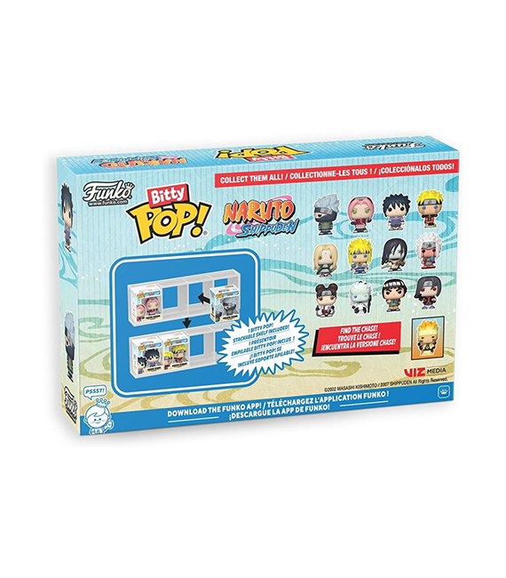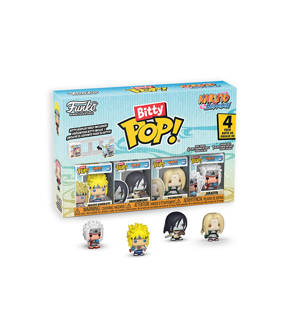 Le monde de POP! s’agrandit et se rétrécit avec les objets de collection Bitty POP! ! Enrichissez votre collection Naruto: Shippuden avec ce pack de 4 figurines comprenant Bitty POP! Tsunade, Bitty POP! Minato Namikaze, Bitty POP! Orochimaru et Bitty POP! Jiraiya. Vous avez 1 chance sur 6 de trouver la chase de Bitty POP! Naruto (6th Path).